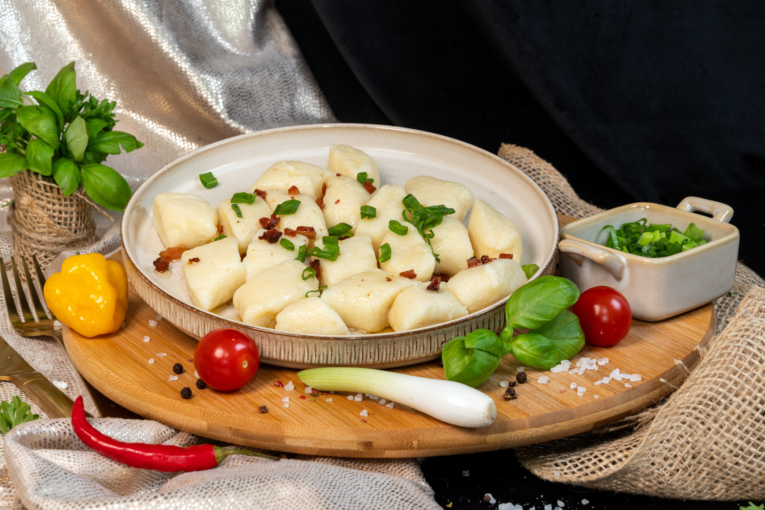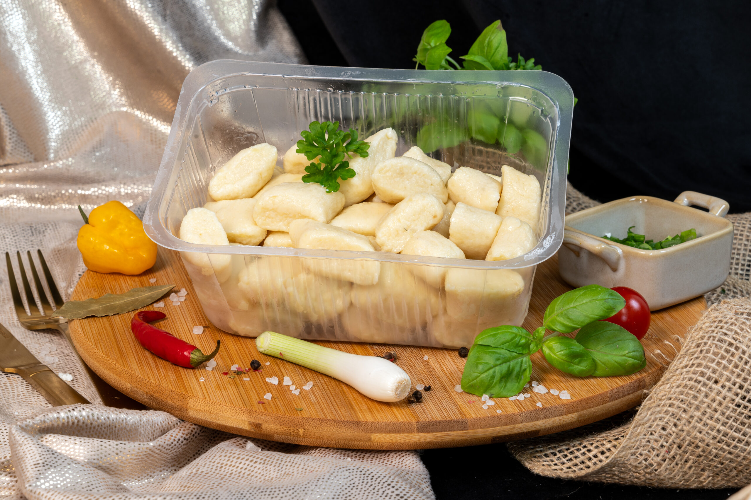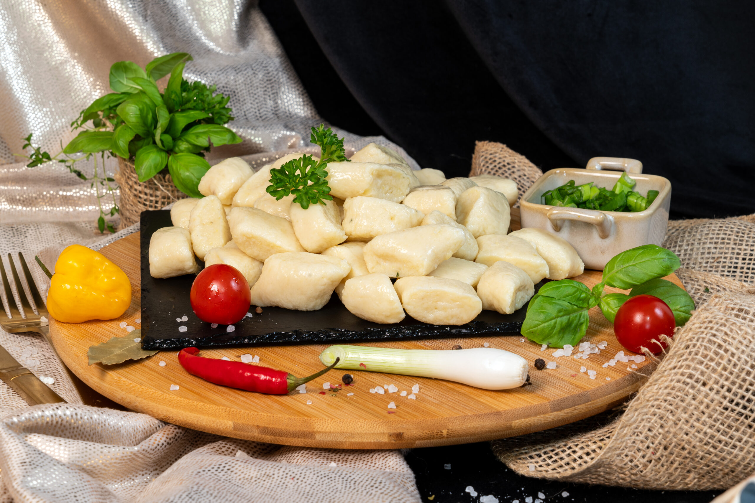 Tradycyjne, miękkie kopytka przygotowane z ziemniaków, mąki pszennej oraz jaj. Idealne jako klasyczny dodatek do mięs i sosów lub baza do różnorodnych dań domowej kuchni.