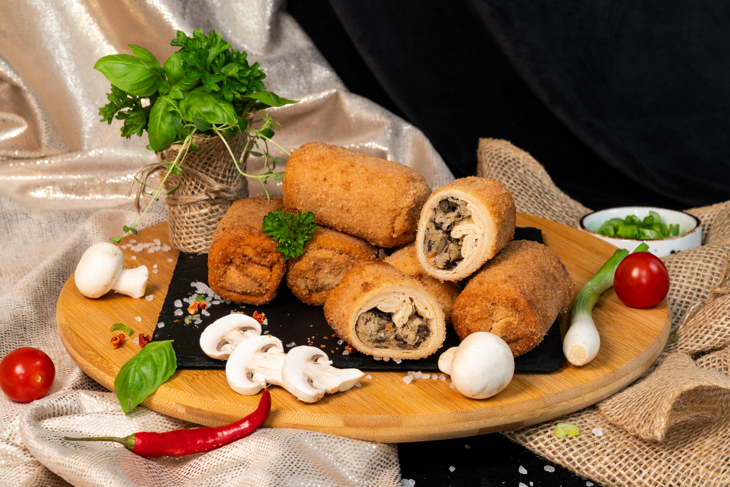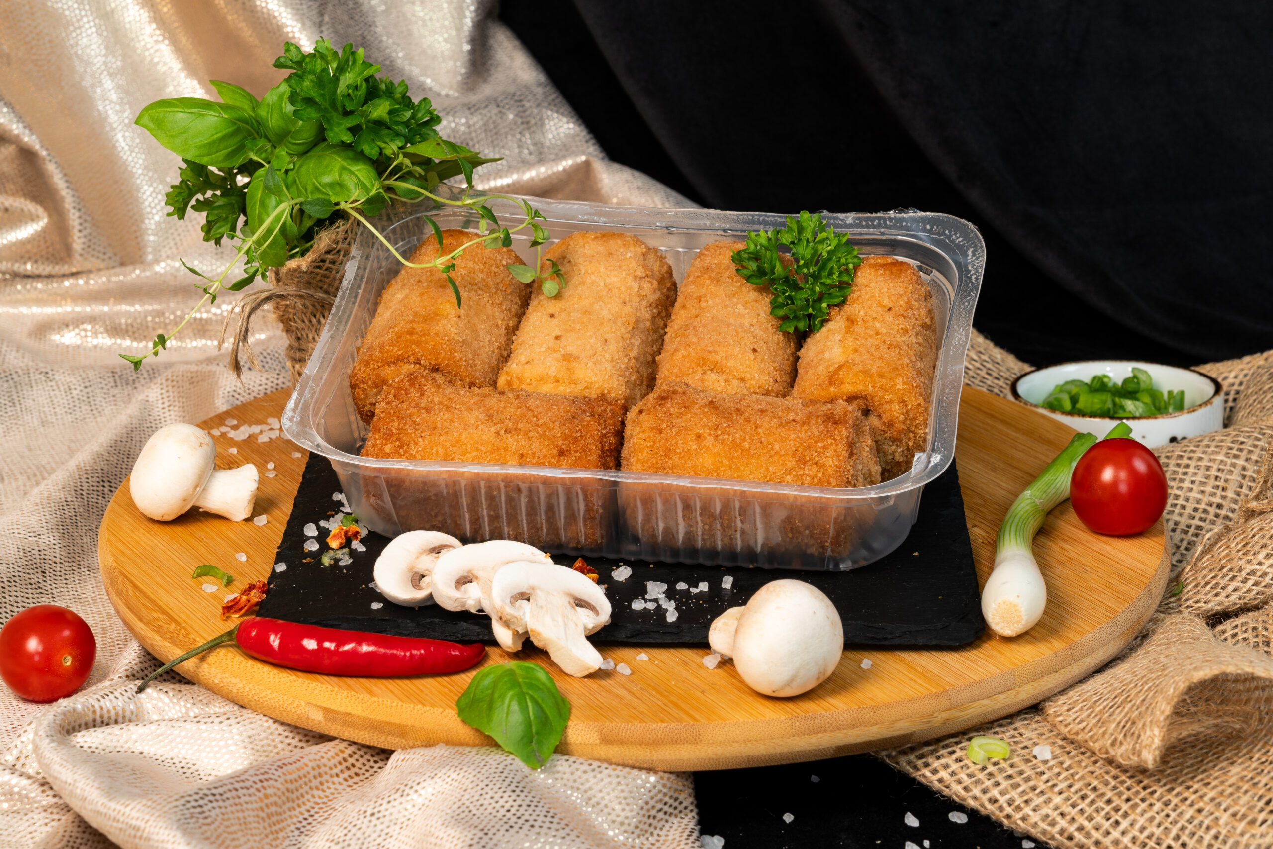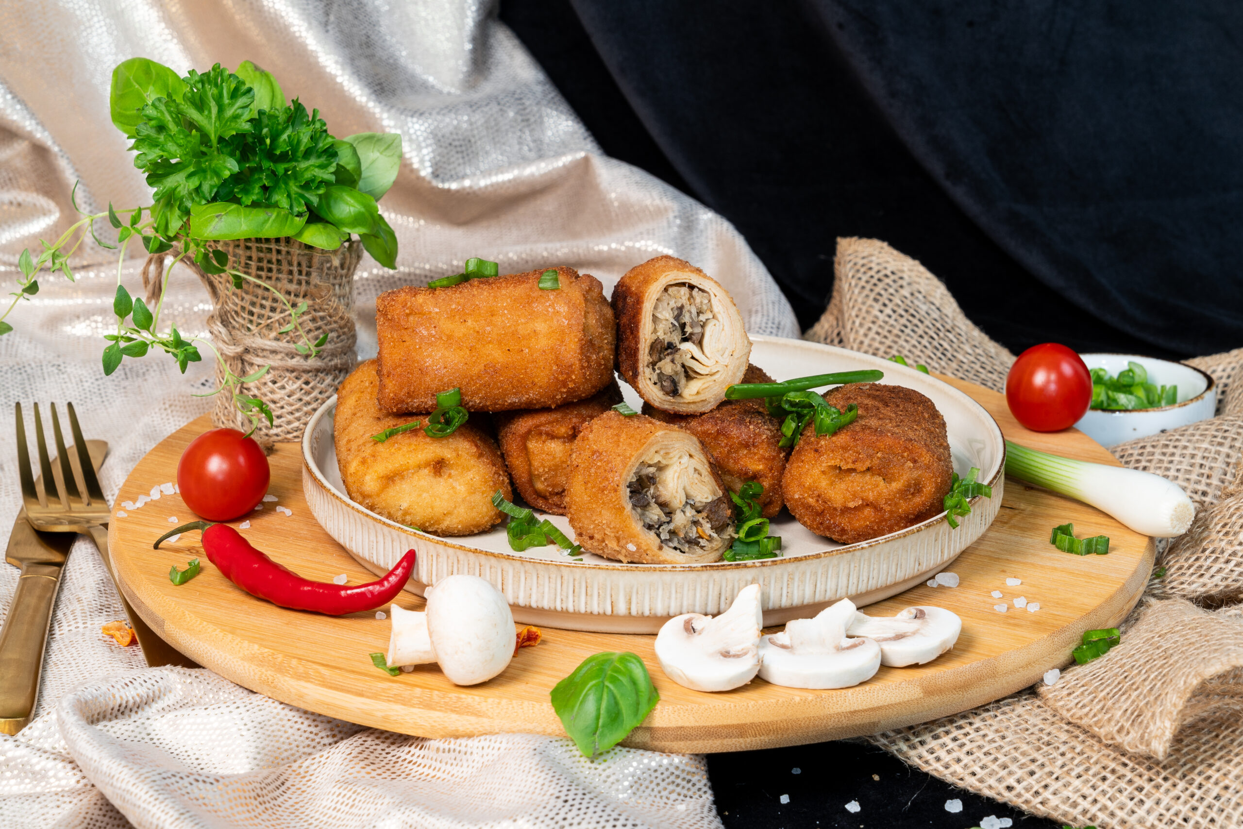 Klasyczne, domowe krokiety z farszem z kapusty kiszonej, pieczarek i warzyw, zawinięte w delikatne naleśnikowe ciasto i obtoczone w złocistej bułce tartej. Aromatyczne, sycące i chrupiące – idealne na szybki obiad, kolację lub świąteczny stół. Wystarczy podgrzać i podać z barszczem czerwonym lub ulubionym sosem.