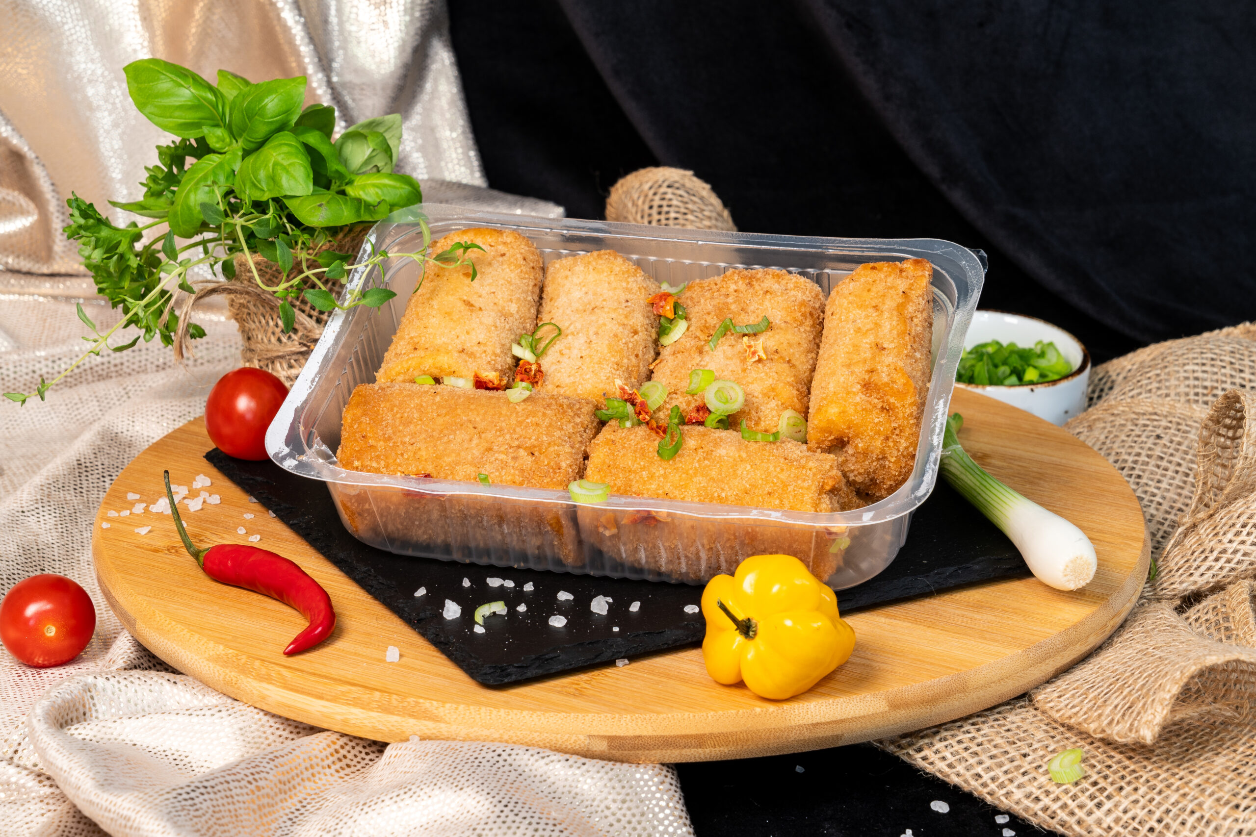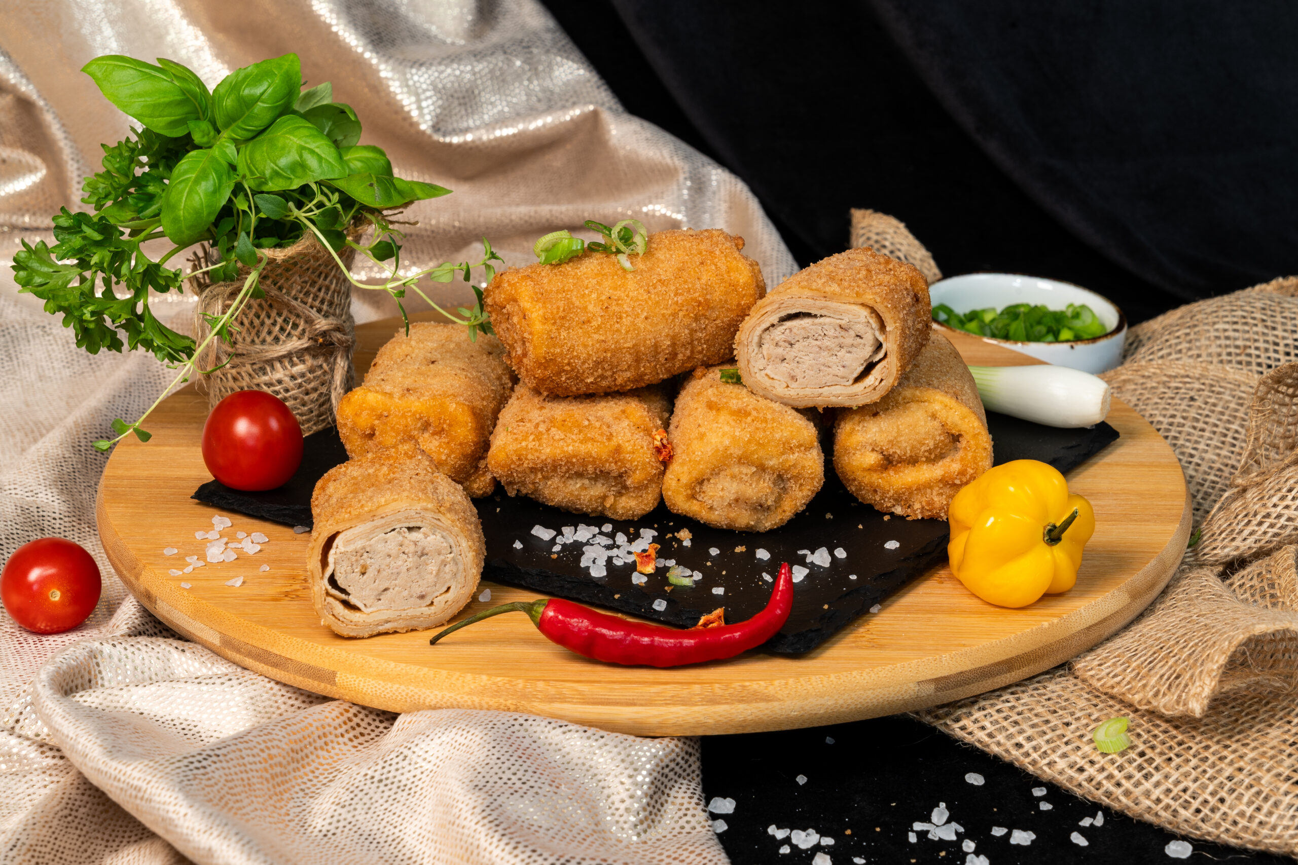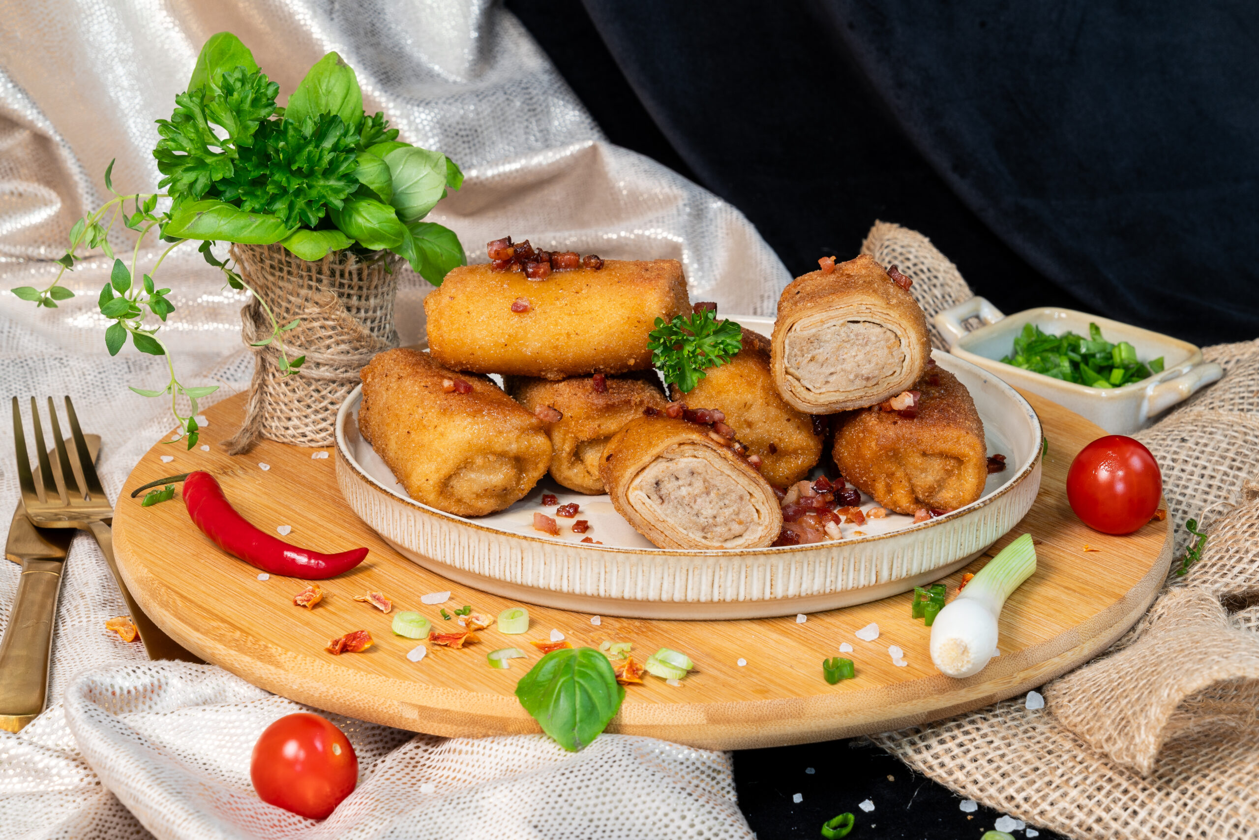 Klasyczne, domowe krokiety z farszem z gotowanej wieprzowiny i warzyw, zawinięte w cienkie naleśniki i panierowane w chrupiącej bułce tartej. Bogaty smak, soczysty środek i delikatnie przyprawiony farsz sprawiają, że to idealna propozycja na ciepły posiłek – z barszczem czerwonym, sosem lub samodzielnie.