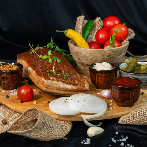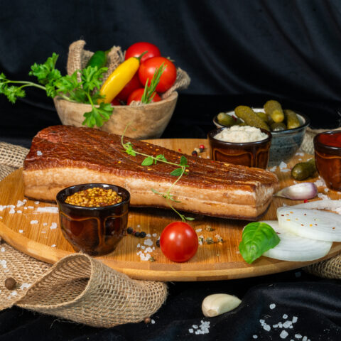 Starannie dobrana szynka wieprzowa, peklowana w aromatycznej zalewie i wędzona w tradycyjny sposób. Dzięki odpowiedniemu procesowi przygotowania zachowuje soczystość i naturalny smak, a delikatna nuta dymu nadaje jej wyjątkowy charakter. Bez dodatku cukru, o wysokiej zawartości białka – idealna na kanapki lub jako składnik dań obiadowych.