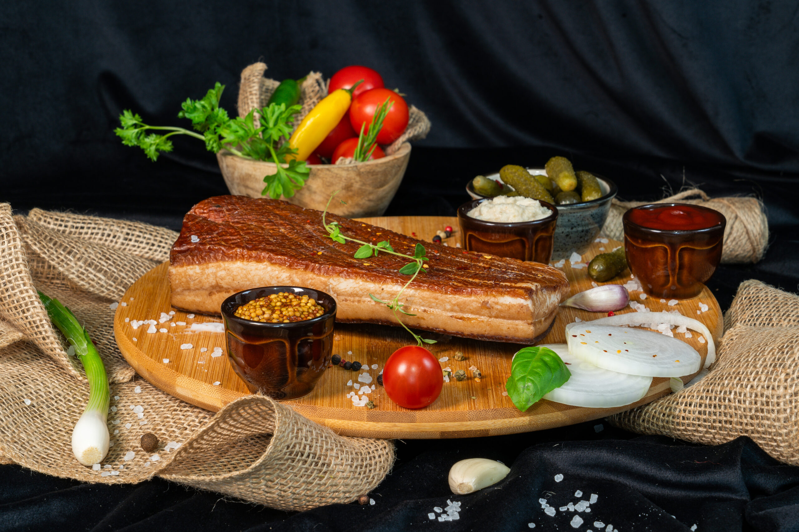 Peklowana i wędzona słonina wieprzowa o intensywnym smaku i aromacie. Doskonała jako przekąska, dodatek do chleba oraz składnik tradycyjnych polskich dań.